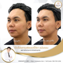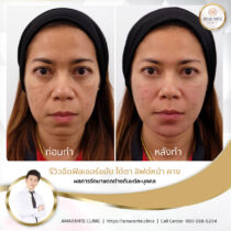 “ เออดี…เออแจ๋วเลย เยี่ยมๆ รอยย่นตรงนี้หายไปเลย พระเอกตกงานก็คราวนี้แหละ อย่างเท่ห์ชอบมากๆ !! ” อาหนูได้กล่าวคำพูดออกมาหลังจากทำการฉีดฟิลเลอร์เสร็จแล้วเรียบร้อย คุณอายังบอกอีกว่าไม่รู้สึกเจ็บเลยสักนิด แต่รู้สึกกังวลมากกว่า แต่ท้ายที่สุดแล้วก็เป็นที่ถูกอกถูกใจของอาหนูคุณอารู้สึกใบหน้าดูอ่อนเยาว์ดูสดใสขึ้นดูเด็กลงไป 3 – 5 ปี และดูเป็นธรรมชาติดูไม่หลอกจนเกินไป และรู้สึกว่าตัวเองตัดสินใจไม่ผิดที่ได้มารับบริการเสริมความหล่อด้วยฟิลเลอร์กับคุณหมอต้นที่ Amarante Clinic เป็นอันสรุปว่า พระยาโกษาเหล็ก หรือคุณอาหนูของเรา ก็รู้สึกประทับใจมากในการฉีดฟิลเลอร์ครั้งแรกในชีวิตกลับกรุงศรีอยุธยาได้อย่างสบายใจ…