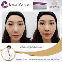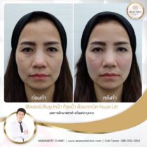 คุณหมอจึงเลือกใช้เทคนิค Royal Lift ซึ่งเป็นเทคนิคเฉพาะตัวของคุณหมอทำการแก้ไขข้อบกพร่องบนใบหน้าของคุณอาหนูให้ดูสดชื่นขึ้นดูอ่อนเยาว์มากขึ้น โดยทำการเติมฟิลเลอร์เพิ่มวอลลุ่มบริเวณใต้ตาฉีด Support กระดูกเพื่อให้เกิดการพยุงถุงใต้ตาขึ้นมา แล้วก็ฉีดเกลี่ยบริเวณใต้ตาให้ดูสมูทดูเรียบเนียนขึ้นดูสดใสมากขึ้นลดปัญหาถุงใต้ตา เติมฟิลเลอร์บริเวณขมับและแก้มตอบให้ดูอิ่มฟูขึ้นดูมีน้ำมีนวล จากนั้นทำการเติมฟิลเลอร์เพื่อยกคิ้วให้ รวมถึงเติมฟิลเลอร์ลิฟต์หน้าให้ใบหน้าดูมีมิติดูสมส่วนมากยิ่งขึ้น และหลังจากทำก็เป็นที่ถูกอกถูกใจของอาหนูเป็นอย่างมาก เพราะคุณหมอต้นจะเน้นความเป็นธรรมชาติไม่ยัดเยียดฟิลเลอร์ที่เยอะจนเกินไป ทำให้ผลลัพธ์ที่ได้ดูสดใสใบหน้าดูอ่อนเยาว์ คุณอาหนูก็รู้สึกประทับใจมาก