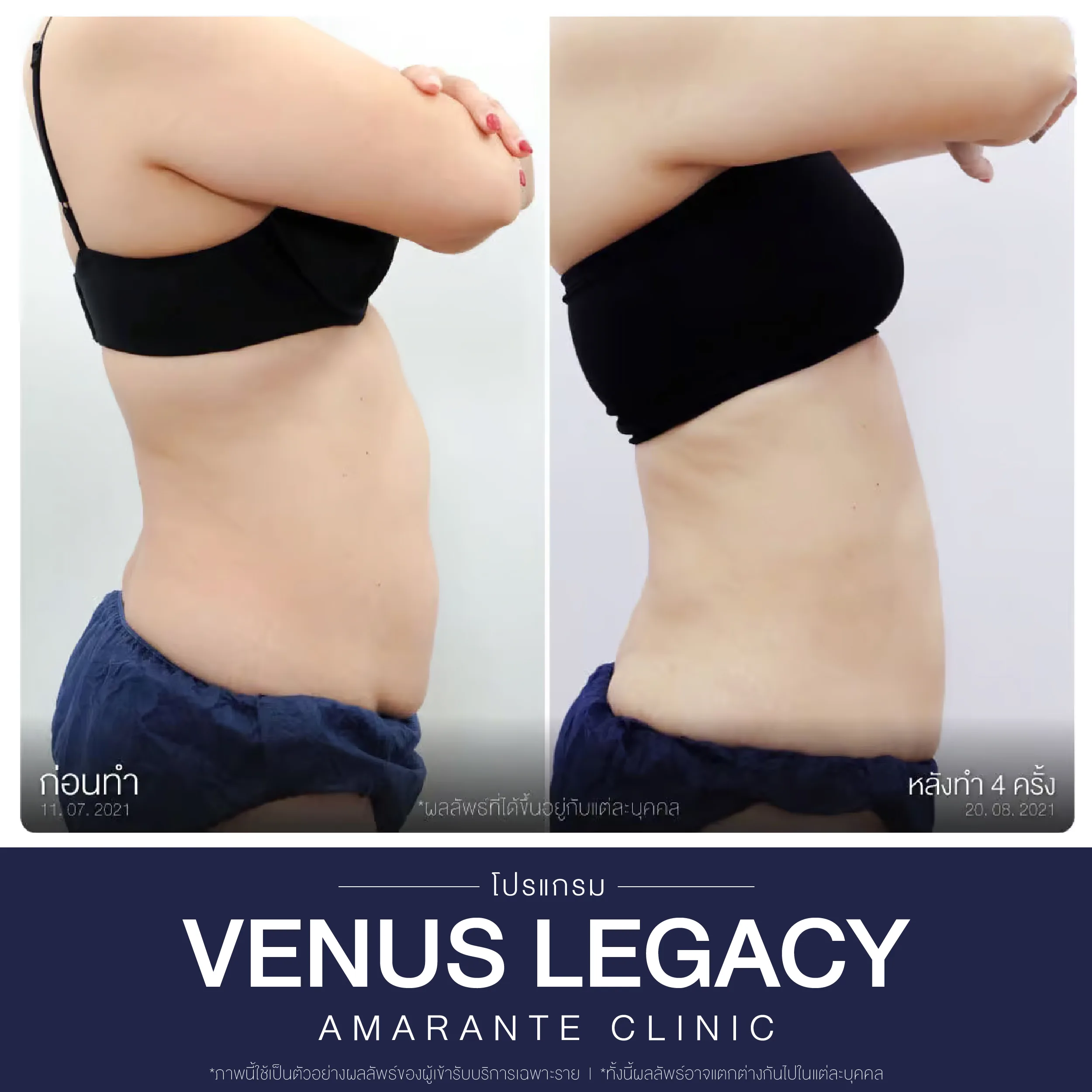 สำหรับท่านใดที่กำลังหาตัวช่วยหรือทางลัดในการลดไขมัน โปรแกรม Venus Legacy ที่ Amarante Clinic เป็นอีกหนึ่งตัวเลือกที่จะเข้ามาช่วยในเรื่องของการดูแลรูปร่าง กระชับสัดส่วน ร่วมกับการวางแผนการรักษาจากทีมแพทย์ Amarante Clinic เพื่อหุ่นสวยที่ตรงใจมากที่สุด ติดต่อสอบถามข้อมูลเพิ่มเติมหรือต้องการดูรีวิว สามารถเลือกช่องทางการติดต่อได้ตามช่องทางด้านล่างที่ได้แนบไว้
